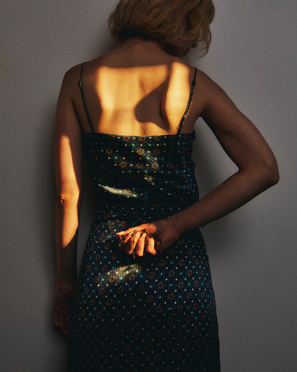 Our collection is sustainably designed and hand-made in London in limited quantities, with bespoke prints and natural fabric. We are carbon-positive. This piece is covered by our complementary lifetime care service. This Fold is carbon positive: Paradisefold captures over two times the garment's carbon footprint.